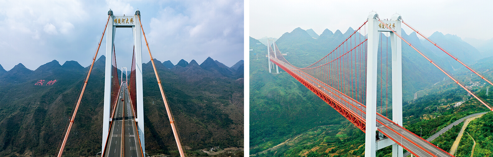 都格北盤江大橋是公司提供招標咨詢服務的又一重大工程。大橋跨越貴州和云南兩省交界的北盤江大峽谷,全長 1341.4 米,主跨為 720 米雙塔雙索面七跨連續(xù)鋼桁梁斜拉橋,橋面到谷底高度565 米,是杭瑞國家高速公路畢節(jié)至都格段重要工程,是當時世界第一高橋,于 2016 年建成通車。